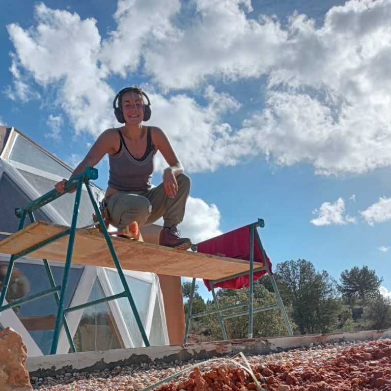 Fleur completed her Hotel Management degree in The Netherlands, during her last year in university, she had to choose two different businesses to spend her full-time internships. The first was in a 5* boutique hotel in Amsterdam, the second in a luxurious resort in Tenerife and this was her first experience living abroad for some time. It turned out to be an experience that she wanted more of. After graduating she worked hard to earn enough money to go follow her first dream: visiting Australia. From one thing came another and she ended up staying two full years working and traveling around. Beginning in the bigger cities, to then explore more and more rural areas, where she discovered her love for nature even deeper. After returning to The Netherlands, she continued working in hotels, hostels and restaurants, from luxurious to cozy businesses. Regardless of the fact that she enjoyed giving good and warm service to the guests, with some little travel trips in between, there was always a desire to head off again, to explore, learn, work and live elsewhere. One great day, she decided to go follow another dream; working with natural materials, working with her hands. The search began and as you may guess, here our stories start to melt together, she found a project to help in the building of a wooden dome from scratch in Soria, Spain.